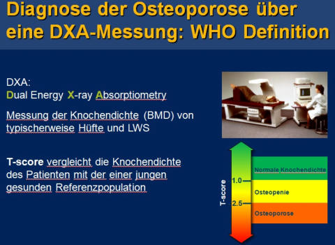 Wir betrachtens es als eine unserer ärzlichen Aufgaben, Erkrankungen des Knochens möglichst früh zu erkennen und zu behandeln. Dabei orientieren wir uns an den Leitlinien der Dachgesellschaft für Osteologie (DVO) und deren Qualitätskriterien. Die Knochendichtemessung mittels der DEXA-Methode ist eine technische Standarduntersuchung zur Erkennung von Knochenmineralverlusten. Wir bieten diese Untersuchung in unserer Praxis an.